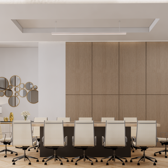 Walking further into the office, you'll notice an open-plan layout that encourages collaboration and interaction among employees. Large windows surround the entire workspace, allowing plenty of natural light to flood the area, reducing the need for artificial lighting and enhancing the office's energy efficiency.
