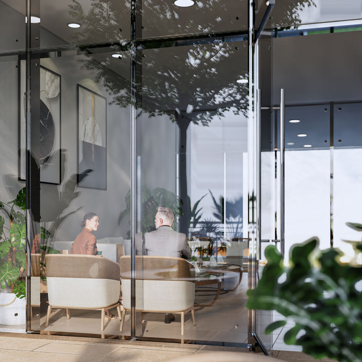 The terrace serves as a seamless extension of the office, allowing for a seamless transition between indoor and outdoor environments, fostering a sense of connection and harmony within the workplace. Step into this extraordinary double-height area and immerse yourself in the harmonious union of nature and modern design.